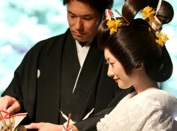 日本の伝統を感じる和風の落ち着いたたたずまいに、着物の美しさがより一層際立ちます。 雅な中に凛とした空気が漂い、大変雰囲気があります。昨今では伝統美香る和装が若い女性にご好評をいただいております。