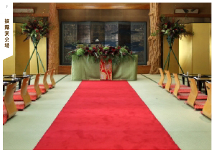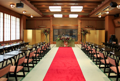 依雲(いうん):少人数〜最大50名まで収容できる当館で一番大規模な会場となっております。 日本の伝統を感じさせる座敷、テーブルのスタイルからお選びいただけます。
