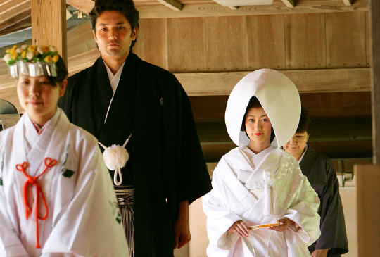 筑波山神社本殿での結婚式と江戸屋での披露宴は、新郎新婦はもとより、ご両家をはじめ出席者の皆様から、おごそか・優雅で格調高いと好評をいただいております。